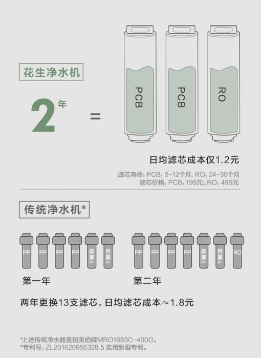 | 目前世面上的家用净水器非常多,有下置的、有台式的,有四芯的、双芯的,大的小的白的黑的。估计在选购的时候看着那一大堆的参数都已经发懵了吧。下面,我们就带着大家“抛开参数”,来看看美的推出的花生双芯净水器到底有怎么的颜值与实力。 花生造型,颜值高的不像话 为什么叫花生净水器,打开包装就能知道答案。这台净水器采用了花生的造型设计,通体白色外壳,第一眼看上去,估计很多人不会把它和净水器联系起来。 ![]() ![]() 产品采用的是包裹式对称双弧型的外壳设计,乍一看是不是有点像科幻片里面的背包式喷射飞行器?当然了,你也可以把这看成是两瓶家庭装的大可乐并排而立的样子。因为这样的设计从横截面上看呈花生状,所以就有了“花生净水器”的命名。据官方的介绍,这样的设计是为了能够降低净水器工作时发出的噪声。 五级过滤 滤芯极简替换 说到滤芯,美的花生净水器采用五级过滤设计,掀开顶部的盖板可以看到共有两个滤芯,一个是PCB前后置符合滤芯,一个是反渗透RO膜。之所以说它是五级过滤设计,是因为一个PCB前后置复合滤芯里面,集成了四重过滤系统,包括PP棉、碳纤维、高精度PP棉和碳棒滤芯。 ![]() ![]() ![]() ![]() 好不好用看测试结果 产品购买后可到中净万家预约专业师傅上门安装,中净万家为您提供优质的净水器售后安装服务。下面我们对它的性能进行一个简单的测试,测试项目包括TDS值、余氯、废水比、噪音等。TDS是从外国引入的一个概念,是英文Total Dissolved Solids的缩写,指的是水中总溶解性物质的浓度,最终可以通过TDS检测笔得出一个具体的数值,单位为毫克/升(mg/L),一定程度上能说明水中杂质总量的多少,数值自然是越小越好。 ![]()